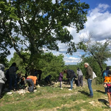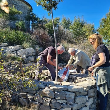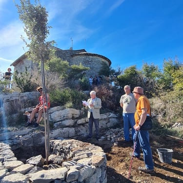 Bernard Raoux et plusieurs autres membres de l'association ont montré la technique des pierres sèches et érigé une vasque pour la plantation de l'arbre commémorant les festivités!
