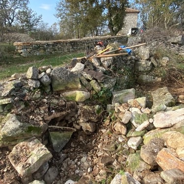 Lorsque nous aurons fini (2026?), nous attaquerons la rénovation de la capitelle qui se trouve au milieu du pré.
